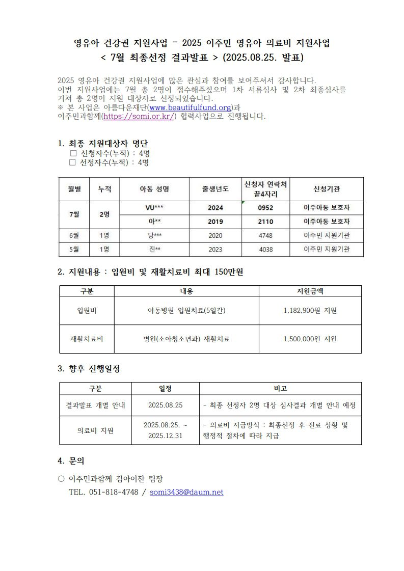 2025 영유아 건강권 지원사업 <7월 최종선정 결과발표>